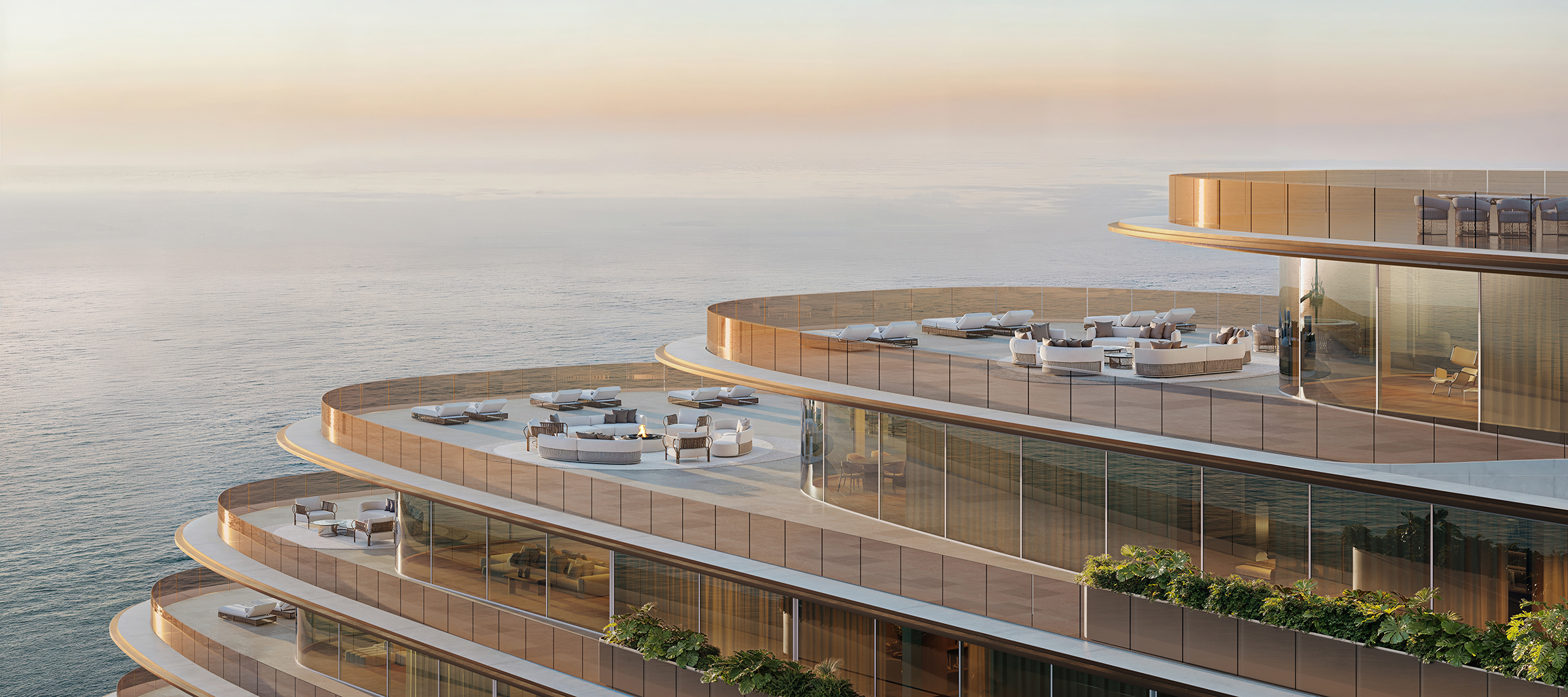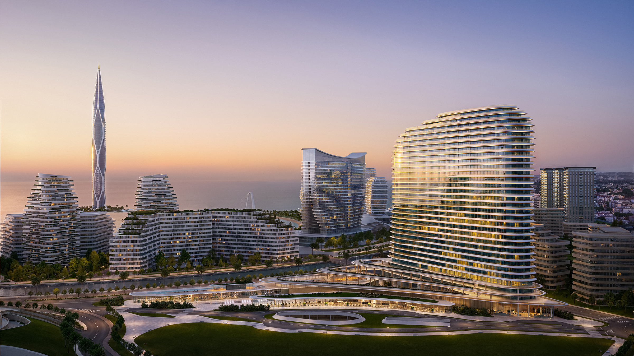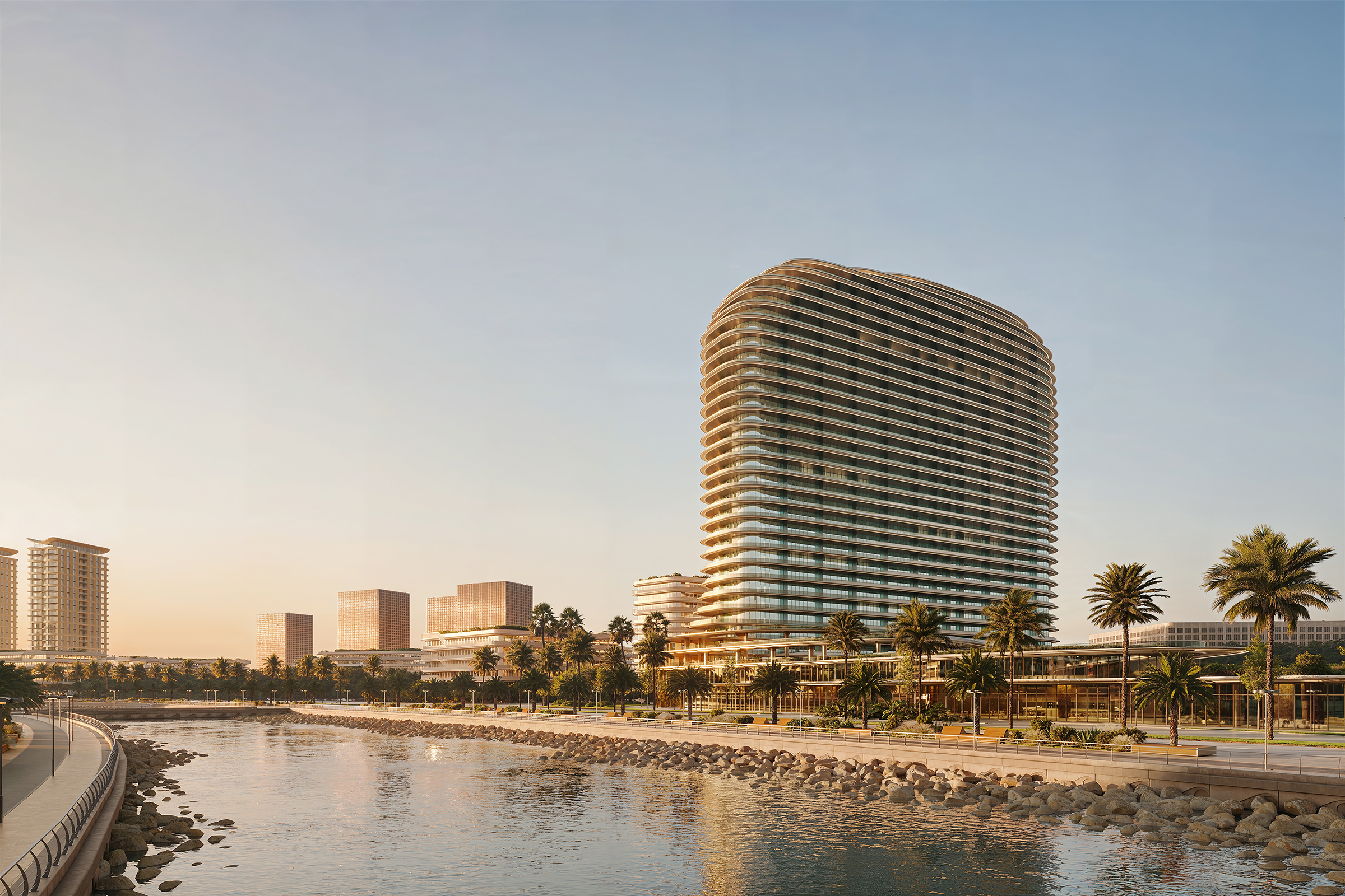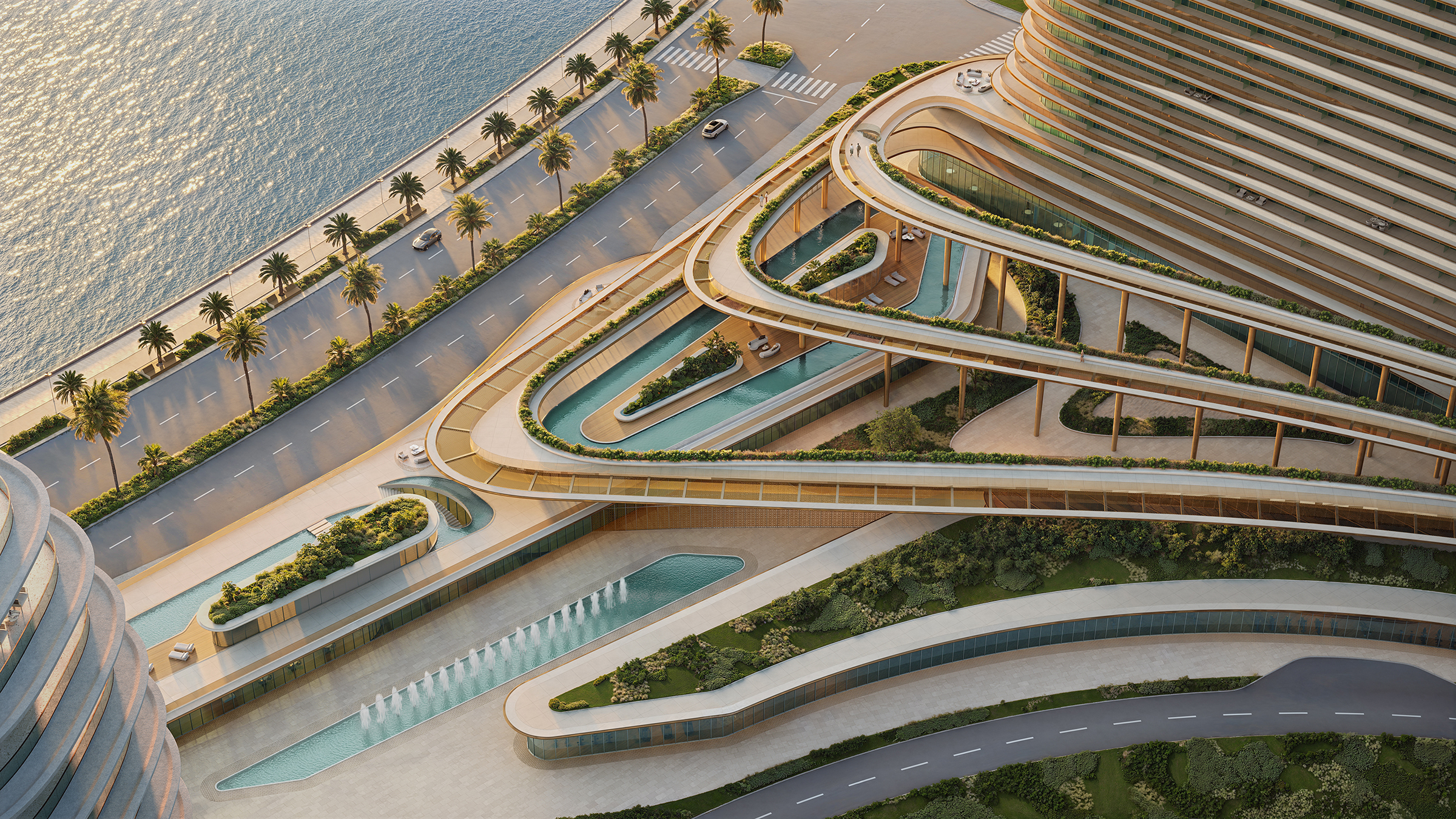 Panorama by Elie Saab Maison operates as a thirty-storey study in coastal behaviour. Its massing rejects the linear and the abrupt, instead borrowing the logic of a sea-worn stone—edges dissolved, surfaces in continuous negotiation with wind and light. The building’s curvature is less an aesthetic gesture than a reading of the shoreline itself, a way of letting the coastal atmosphere script the geometry.