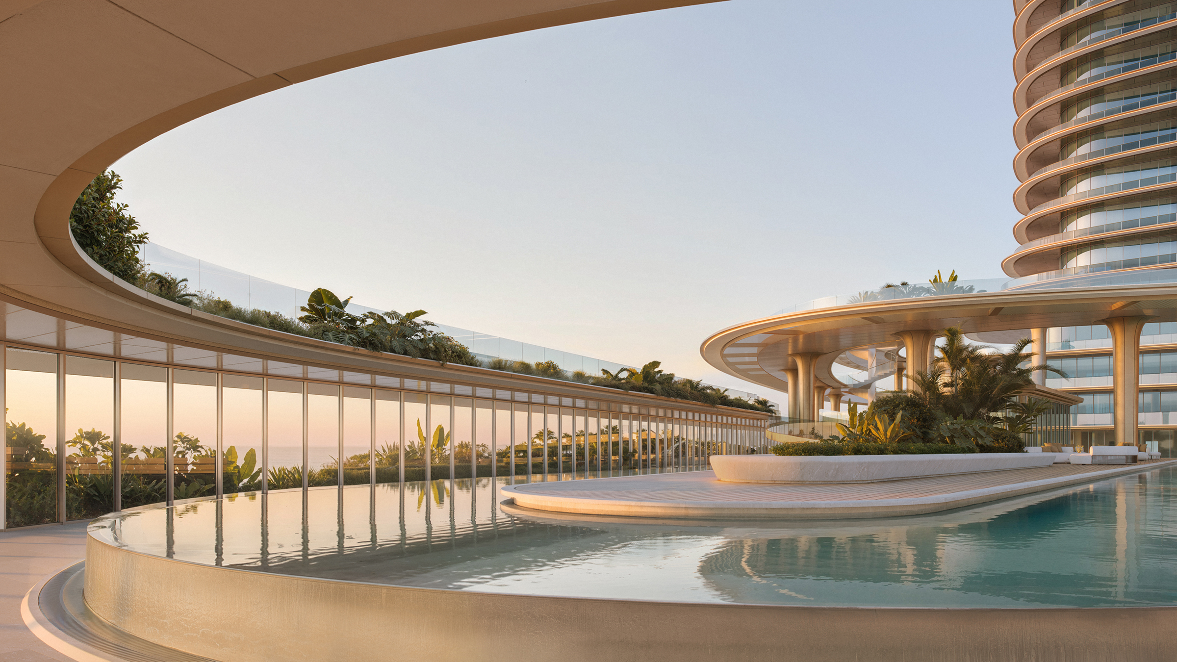 More than 500 residences are arranged as a calibrated field of outlooks, extending sightlines and daylight deep into the plan. Pools, terraces, and wellness spaces form a slow vertical sequence, allowing leisure to migrate across levels rather than remain fixed. Retail and fitness programmes anchor the base, introducing an inhabited threshold that mediates between the city, the tower, and the waterfront.